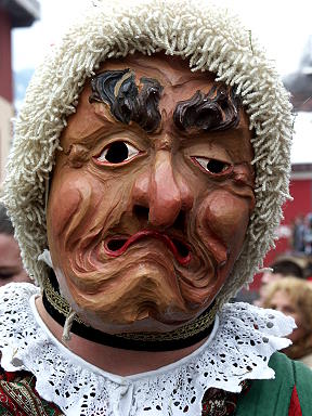 "D'Imster giahn in d'Schalla" Auch außerhalb des deutschen Südwestens haben sich beeindruckende Fasnachten erhalten, herausragend unter diesen ist das Schemenlaufen in Imst in Tirol. Nur alle 4 Jahre schlüpfen die Imster Männer und Burschen ins Fasnachtskostüm, über 800 an der Zahl. Schon früh morgens fiebert das Städtchen im Tiroler Oberland 1 Woche vor dem kalendarischen Fasnachtssonntag dem traditionsreichen Schemenlaufen voller Spannung entgegen. Für einen Nachmittag werden Spiel und Tanz das Leben in den Straßen und Gassen von Imst bestimmen, und für nichts in der Welt würden die Aktiven auf diese unvergesslichen Stunden verzichten wollen. "Des isch a Feierdoag, wia Weihnochda, Oschdern, Silveschder, Geburtsdoag, Mamas Geburtsdoag, alles mitenand, soviel isch des, des isch wie a Virus, do kocht's Bluat, do kemme die Zacher (Tränen) in dia Auga, des isch was ganz Großes", so fasste es Vorroller Luis vor Jahren in Worte. "Roller" und "Scheller", das sind die Hauptfiguren bei dem großen Ereignis, das zu den ältesten und eindrucksvollsten Fastnachtsbräuchen Europas zählt und ein Rest lebendiger Tiroler Volkskultur ist und nicht, wie viele andere Maskenbräuche in den Alpenländern, eine Schauveranstaltung für Touristen, wenngleich auch dieses seltene Spektakel alle 4 Jahre tausende von Zuschauern aus nah und fern nach Imst zieht. "Söll' mer huire in d'Fasnacht giah?", so lautet die rhetorische Frage des Obmanns des Fasnachtskomitees traditionell am Abraham a Santa Clara, der durch Witz und Wortspiel bekannte Augustinerprediger, machte mit dem Schemenlaufen auf einer Reise von Wien in seine schwäbische Heimat Bekanntschaft. "Es ist an verschiedenen Orten - auch hier - der Brauch, daß Bürger und andere gemeine Leute zur dummen und wütigen Faßnachtzeit auf einen Tag ein Schemenlaufen belieben. Nun, es mag ihnen vergonnt werden,(...). Aber das Schemenlaufen soll nicht ein Schelmenlaufen seyn, ansonsten in den Kotter mit euch, ihr Tabackbrüder und Weynzapfen!", notierte er 1683 in seinem Tagebuch, die erste urkundliche Erwähnung des Schemenlaufens. Maskenumzüge gab es in Tirol schon im Mittelalter, wie amtliche Dokumente belegen. Zu Beginn der Neuzeit aber, als das Schemenlaufen immer öfter in wüste, oft gar tödliche Schlägereien ausartete, trachtete die Obrigkeit die "Mascaraden und Mummereyen" einzuschränken; zumindest der Besitz von Waffen wurde untersagt, dann jeder nächtliche Umzug, schließlich wurde das Tragen von Teufelsfratzen verboten und im Jahr 1707 dann das ganze Schemenlaufen. Viele Tiroler aber machten sich nichts aus solchen Verboten, allen voran die Imster. Im Jahre 1775 fand ein "Schemenprozeß" in Pfunds im oberen Gericht statt. Die Burschen des Ortes hielten sich nicht an das Fasnachtsverbot und rückten zum Schemenlaufen aus. Als sie sich deswegen vor Gericht zu verantworten hatten, rechtfertigten sie sich damit, daß auch in Imst und andernorts "die Schemenlaufferey ungehindert gestattet werde". Im Rahmen der Prozeßaussagen stellte sich heraus, daß man in Imst gleich dreimal in die Fasnacht ging. In Imst wollte man allen Unterdrückungsmaßnahmen zum Trotz von der Liebe zur Fasnacht nicht ablassen. Und so klingen die Erzählungen nur allzu glaubwürdig, in denen berichtet wird, dass beim großen Brand des Ortes von 1822, den von den damals 220 Häusern nur 14 unbeschädigt überstanden, so mancher Imster all sein Hab und Gut verlor - nur sein "Larvle" konnte er aus den Flammen retten... Und gerne erzählen die Imster auch die Geschichte eines Schulleiters, der seiner vorgesetzten Dienststelle 1829 meldete: "(...) wurde der ganze gestrige Nachmittag ein Ferialtag, weil es bei diesem Maskenlaufen wegen alter, eingewurzelter Gewohnheit nicht möglich war, die Schüler, wovon viele ohnehin nicht gerne die Schule besuchen (...), zusammenzubringen." Für die Imster beginnt das Schemenlaufen schon früh um halb sieben, allerdings noch unmaskiert, mit einem Gottesdienst zu Ehren aller verstorbenen Schemenläufer – selbst Hexen finden hier den Segen Gottes. Gleich nach der Messe rufen berittene Mit dem "Pemsl" (Pinsel), einer Art Wedel, bestehend aus einem Stab mit ausgefranstem Weidenholz am oberen Ende, gibt der "Vorroller" das Zeichen zum Aufbruch. Er ist der Zugmarschall, die ranghöchste Maskengestalt, der Mann mit der größten Autorität; alle hören auf sein Kommando, voran die Scheller und Roller, die zusammen jeweils ein "Paarl" bilden. Ihr Spiel ist bis ins Detail festgelegt: Fast ständig tänzeln die zierlichen Roller um die schwerfälligen Scheller – einstudierte Rollen. Der Roller trägt eine jugendlich-weibliche, faltenlose Maske mit kunstblumenbehaftetem Kopfputz, dem "Schein", in dessen Mitte sich ein Spiegel befindet. Sein Charakteristikum ist das "Gröll", ein Ledergurt, der mit 40 bis 48 Rollen besetzt ist und um die Hüften getragen wird. Sein Widerpart, der Scheller, weist eine streng dreinblickende, faltendurchzogene Larve mit weitausladendem "barocken" Schnauzbart und einen um vieles größeren Kopfputz mit Spiegel und Eibenkranz auf. Der Apfel am Schellerstab ist für jene Frau, die den Kopfaufputz gefertigt hat, ihn "aufgeputzt" hat, reserviert. Seine Hüften sind mit dem bis zu 35 kg schweren "Gschall", vier bis zehn handgeschmiedeten Kuhschellen, die je zur Hälfte vorn und hinten an einem breiten Lederriemen hängen, umgürtet. Diese läßt er ertönen, sobald ihn "sein" Roller durch den entsprechenden Tanz dazu aufgefordert hat. Beim "Gangl", ihrem gemeinsamen Tanz, mischt sich das Bimmeln der Roller mit dem dumpfen Schlag der Scheller. Die heftigen Hüftbewegungen der Scheller rufen nicht nur beim Zuschauer sexuelle Assoziationen hervor, sondern werden auch von den Akteuren, die sie als "Ehestandsbewegungen" bezeichnen, in diesem Sinne verstanden. Den rituellen Tanz ihrer jugendlich-kraftstotzenden Vorbilder parodieren schließlich "Laggeroller" und "Laggescheller" (lagg = schlapp), die sich als alte, schlam
