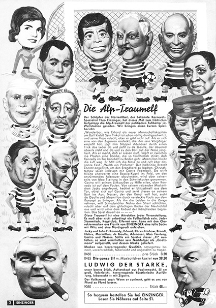 Walter Preussler, gelernter Graveur und Modelleur und gebürtig aus dem Sudetenland, erkannte Ende der 1940er-Jahre die Karnevalsmasken als Marktlücke. In Hünfeld in Hessen setzte er seit den 1950er-Jahren die Tradition der Thüringer Larvenmacher mit Papier- und Gazelarven fort, die in der sowjetisch besetzten Zone als Vertreter der wirtschaftlich unpopulären Leichtindustrie einen schweren Stand hatten. In den folgenden Jahren entwickelte Preussler Techniken zur Produktion von Masken aus Kautschuk, später Gummi, Plastik und Vinyl. In den 1980er-Jahren eroberte er mit Halloweenmasken den amerikanischen Markt. Politiker als Ziel des närrischen Spotts Insbesondere seine absolut lebensechten Politikermasken, etwa des Ex-Bundeskanzlers Helmut Schmidt oder des Bundesaußenministers Hans-Dietrich Genscher, brachten dem Maskenbauer ab 1975 mehrmals Einladungen zu den Kanzlerfesten nach Bonn ein. Ein Jahr später wurden bereits sämtliche Preussler’schen Maskenkreationen im Garten des Bundeskanzleramtes ausgestellt. Ein Gruppenbild der beiden Herren Schmidt mit Gattinnen gehört wohl zu den Schmuckstücken der Firmenhistorie. Über den guten Geschmack hinaus dürfte seine Maske Saddam Husseins gegangen sein, was die Ausstellungsmacher der Nürnberger Spielwarenmesse veranlasste, diese 1990 aus ihren Regalen zu entfernen. Der Golfkrieg 1990/91, die Absage der Fastnacht, aber auch der steigende Konkurrenzdruck aus Fernost bedeutete das Ende der hessischen Maskenproduktion. Preussler, wie viele andere dieser Branche, blieb auf einer kompletten Jahresproduktion sitzen. Im Katalog eines der aktuell führenden Maskenhersteller lassen sich derzeit über 40 Promi- und Politikermasken finden. So unter anderem natürlich der US-Präsident Barack Obama oder auch die ehemalige britische Premierministerin Margret Thatcher. Interessant ist die zum Teil anonymisierte Produktbeschreibung. So wird die unschwer als Jürgen Klinsmann zu entlarvende Maske lediglich als „Trainer“ betitelt sowie die britische Komikerfigur Mr. Bean als Mr. Biene. Die Gründe dürften wohl in der fehlenden, weil teuren Autorisierung zum namentlichen Vertrieb liegen. Grenzen der Geschmacklosigkeit dürften bei der Maske Adolf Hitlers erreicht sein. Die Schaumlatexlarve zum Preis von 49,90 Euro wird im Internet explizit für Halloweenkostümfeste, aber auch zu Gegendemonstrationen bei Neonaziaufmärschen angeboten. Im selben Medium besteht die Möglichkeit, Papierlarven auszudrucken und auszuschneiden, etwa von unserer Bundeskanzlerin Angela Merkel. Gesundheitlich ist diese Variante der Vermummung sicherlich unbedenklicher als die fernöstliche Latexkonkurrenz, vor welcher die Verbraucherschützer regelmäßig wegen zu hoher Schadstoffinhalte warnen. |