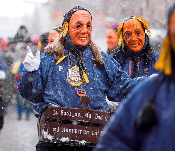 Während bei der politischen Karikatur die Satire im Vordergrund steht, bietet sich natürlich in der Fastnacht der Humor als Triebfeder der Entstehung von Porträtmasken an. Ortsgrößen und stadtbekannte Originale durften u. a. im Brauchgebiet der schwäbisch-alemannischen Fastnacht Modell stehen. Villingens hochstehende Maskenschnitzkunst war natürlich auch Nährboden dieser Spezies der närrischen Mummerei. Mutmaßlich der letzte Turmwächter der Stadt bereichert als „Weberigel“ den reichen Fundus Villinger Porträtlarven. Nicht immer ungeteilten Beifall fanden derartige Kunstwerke bei den dargestellten Personen. Franz Fischer schildert in seinen Schriften die Geschichte der in den 1870er-Jahren entstandenen, zum Typus der Surhebelmasken gehörenden Larve des „Stachelfranz“. Der mutmaßlich dargestellte Villinger Bürger erwirkte gerichtlich eine Umänderung der Larve. „Die Folge war, daß der Bildhauer die Larve behördlicherseits umändern musste, was dieser durch ,Wegrasierung‘ des Bartes, den der Surhebel trug, vollführte“ (Albert Fischer, 1914). Neben Villingen besitzt auch Rottweil in den Reihen seiner Schantle dem Volksmund nach eine Porträtlarve. Ein Hieronymus (Ronnys) soll der Erstbesitzer der gleichnamigen Larve gewesen sein. Eine Wunde an der Schläfe soll auf eine Schlägerei im Gasthaus Zum Kreuz zurückzuführen sein. Weitere Larven, insbesondere des sogenannten Herrenkramer’schen Fundus, lassen auf ehemals lebende Vorbilder schließen. Wohl einer der ersten Protagonisten des über die Grenzen hinaus bekannten Schramberger Da-Bach-na-Fahrens war 1939 der Zahnarzt Erwin Grüner. Seine Gesichtszüge zieren bis heute die Maske des mit einem Holzzuber gegürteten närrischen Wassersportlers. Grenzen überschritten Tarrenz im Bezirk Imst in Tirol beheimatet gleich eine ganze Narrengruppe von Porträtlarven. Die als „Originale“ bezeichnete Gruppe bereichert bereits seit vielen Jahren das örtliche Fastnachtstreiben, hat aber mit der traditionellen Tarrenzer Fastnacht nichts zu tun. Ortsbekannte, eben Originale, fanden als Holzmaske Einzug in diese Gruppe. Grenzen der Akzeptanz wurden wohl 1997 überschritten, als der Tarrenzer Holzschnitzer Reinhold Neururer den Tiroler Landeshauptmann Weingartner als Holzmaske verewigte. Neben örtlich geführter kontroverser Diskussionen war wohl auch das Zusammentreffen mit dem echten Original von Spannungen und Unbehagen geprägt. Die Larve selbst befindet sich zwischenzeitlich im Besitz seines Doubles.