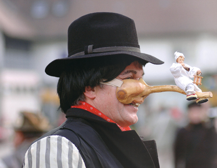 Hans Sachs schrieb 1550 über das Thema, ein „Fasnacht spil, das ist mit 9 Personen zu spiln und haiset der Nasentanz“, in dem der Schultheiß einen Wettbewerb auslobt und den Männern mit den drei größten Nasen einen Gewinn verspricht. Nun treten nacheinander mehrere Männer hervor und preisen ihre jeweiligen überdimensionierten Riechorgane.
