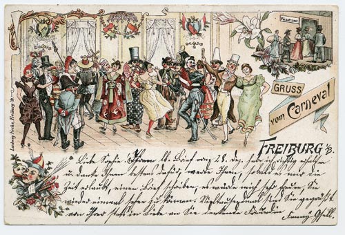 Erst seit 71 Jahren ist die alemannische Fasnet in Freiburg heimisch. Vor 1934 schwang hier Prinz Karneval das Narrenzepter. Heute ist die Freiburger Fasnet eine durchaus gelungene Mischung von karnevalistischer Tradition und dem damals „aufgepfropften” alemannischem Brauchtum - wobei Letzteres heute deutlich dominiert. Die erste Erwähnung des Wortes „vasinaht” in Freiburg im Jahr 1283 war noch eine reine Datumsangabe, aber in der frühen Neuzeit häuften sich auch in Freiburg die urkundlichen Belege für die Fastnacht als geübten Brauch – meist handelt es sich um Verbote, denn die Obrigkeit war stets bemüht, das anarchische Fastnachtstreiben unter Kontrolle zu halten. Mit dem Übergang Freiburgs von Österreich an Baden 1806 wurden die geselligen und kulturellen Vereine zum wichtigsten Träger der Fastnacht. Es gab Maskenbälle, Fastnachtszeitungen wurden produziert, der erste nachweisbare Umzug fand 1844 statt. Bezeichnenderweise hat ihn ein Gastwirt veranstaltet, dessen Lokal anschließend gut gefüllt war.