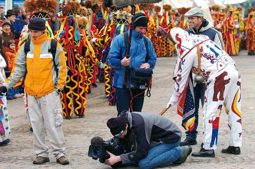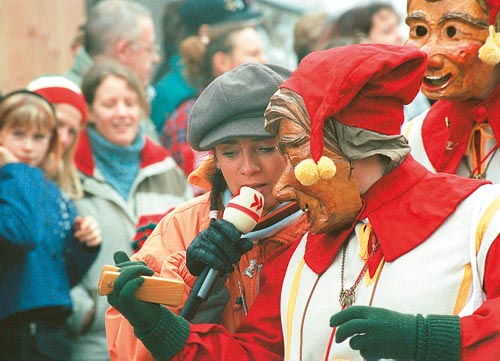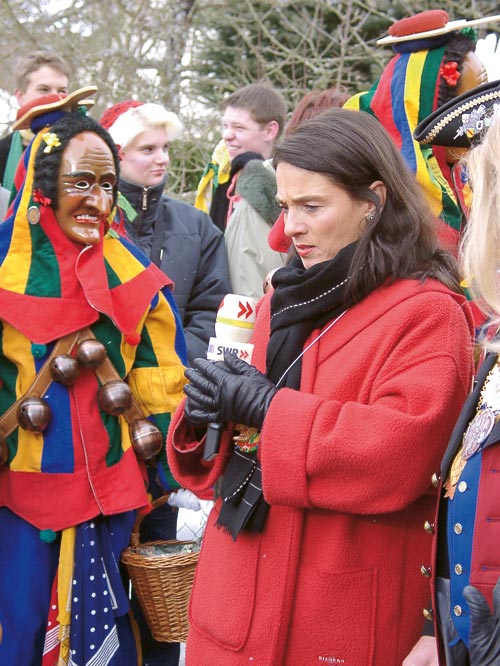 Damit wurde ein Trend bestätigt, den die Fernsehforscher seit Jahren beobachten. So steigen die Ein- schaltquoten mit der Nähe der Zuschauer zur Veranstaltung. Genau betrachtet erwiesen sich 2005 in Baden-Württemberg die Sitzungen aus Esslingen (920 000 Zuschauer), Konstanz (840 000 Zuschauer) und Frankenthal (710 000 Zuschauer) als Bestseller. In Rheinland-Pfalz stießen umgekehrt die Sitzungen aus Mainz (420 000 Zuschauer), Frankenthal (400 000 Zuschauer) und Saarbrücken (310 000 Zuschauer) auf das größte Publikumsinteresse. Ähnliches gilt auch für die Narrensprünge. So sahen die Narrentreffen in Lörrach (16. Januar), Laufenburg ( 23.Januar.) und Riedlingen ( 30.Januar) anno 2005 in Baden-Württemberg insgesamt 650 000 Zuschauer, während sich in Rheinland-Pfalz gerade einmal 130.000 Zuschauer für die Vermummten aus dem Süden interessierten. Insgesamt aber finden fremde Zuschauer eher zur Straßenfastnacht Zugang als zum Sitzungskarneval, der gewöhnlich dialektgefärbt ist und vom Betrachter deshalb viel Verständnis verlangt. So bescherte das größte Karnevalsereignis im Saarland, die traditionelle Sitzung „Alleh Hopp“, dem Saarländischen Rundfunk mit 40 Prozent mit die besten Marktanteile des Jahres, doch diesseits der Pfalz interessierte sich dafür kaum noch jemand. Das Gegenteil beweisen die Übertragungen von den schwäbisch-alemannischen Narrentreffen. So verfolgten das diesjährige Meeting in Laufenburg nur 140 000 Baden-Württemberger am Bildschirm, bundesweit aber noch einmal 180.000 Zuschauer mehr. Auch Riedlingen (530 000) und Lörrach (410 000) verhalfen vor allem die Zuschauer außerhalb Baden-Württembergs zu ansehnlichen Quoten. Offensichtlich hat der Mummenschanz für Rheinländer, Norddeutsche und andere Landsmannschaften einen gewissen exotischen Reiz – ganz im Gegensatz zur Sitzungsfastnacht, die beim Betrachter nördlich des Mains schnell an ihre Sprachgrenzen stößt.