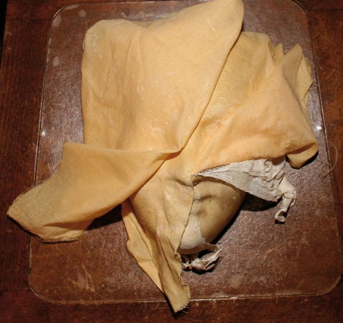 Über drei Stockwerke muss sich der Besucher im knirschenden Treppenhaus hinaufbewegen. Begleitet von unzähligen Rohlingen, die Verena Steiger kunstvoll an den Wänden drapiert hat. Es duftet nach Frischgebackenem. Gastfreundlich empfängt sie uns und zeigt ihre Kunst. Wir staunen. Vergängliche Maskenkunst Über ein Gipspositiv, das sie mit einem speziellen Spülmittel als Trennschicht bestrichen hat, modelliert Verena Steiger sorgsam vier Schichten feines Leinengewebe. Immer wieder streicht sie Weizenleim über das Gewebe und drückt Unebenheiten aus der entstehenden Larve. Das gelbe oder rosafarbene Gewirk muss sie in Ballen von 1000 Metern vom Hersteller abnehmen. Das reicht auf Jahre hinaus. Die genaue Zusammensetzung des Leimes ist ein Betriebsgeheimnis. Wachsweiche Larve Nachdem der Maskenrohling eine Nacht getrocknet hat, wird er vom Positivmodell abgezogen. Augen werden ausgeschnitten und bemalt. Ganz zum Schluss erhält die Bergamaskerlarve einen Überzug. Die Larve wird dazu kurz in flüssiges Wachs getaucht. Das Wachs dient dazu, die Haltbarkeit der Larve zu erhöhen. Denn die Luftfeuchtigkeit, der Schweiß des Trägers und die Luft, die dem Mund entweicht, führen dazu, dass die Larve beim Tragen immer mehr aufweicht. Sie kann nur einen Tag getragen werden, dann ist sie kaputt. 25 Euro verlangt Verena Steiger für eine Maske. Die Nüsslerrotten in Steinen, Schwyz, Unterägeri und anderswo sorgen dafür, dass der Maskenspezialistin das Geschäft nicht ausgeht. Denn am Ende des Fastnachtsdienstags, des Güdelzischtig, werden alle Larven der Nüssler, des Blätz, des alten Herrn, des Dominos, des Baijasse-Buob, des Baijasse-Mäitli (unsere Fotoserie) und der anderen Gwändli dem Feuer übergeben. Masken begeistern Verena Steiger, seit sie denken kann. Erfinden, Entwerfen, Formen, Kneten, Ausdruck, Mimik, Spielen und Erleben, das sind Elemente, die zum Alltag der Künstlerin gehören. Bergmaskerlarven sind das Brot, von dem die Steinenerin lebt. Doch mit Freude und Lust arbeitet sie auch an Larven aus Pappamaschee oder aus Drahtgitter. Und immer wieder gestaltet sie freie Kunstwerke, basierend auf dem Thema Masken. Die Materialien sind dieselben wie bei den Traditonsmasken: Leinen, Leim und eine unbändige Lust, Gesichter ohne Leben zu kreieren. www.steiger-masken.ch