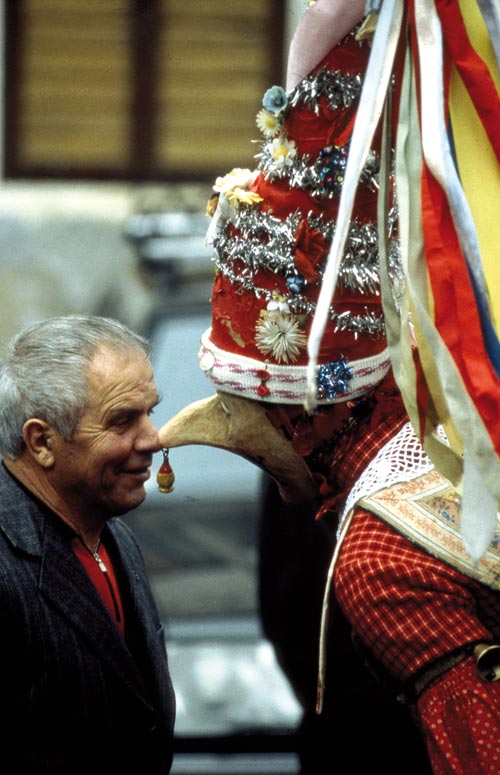 So vielfältig die Bräuche in den Trentiner Alpen auch sind, eines ist ihnen allen gemeinsam. Immer sind die Coscritti ihre wichtigsten Träger, die wehrpflichtigen Junggesellen. Für die Burschen in den Dörfern markiert die Fastnacht die wichtigste Etappe auf dem Weg zum Erwachsensein. Nach dem Schulabschluss gilt es, im närrischen Spiel seinen Mann zu stehen, sich erstmals als vollwertiges Mitglied der Dorfgemeinschaft zu beweisen. So wie in Palù (Val dei Mocheni), wo die Kosskrötn zum Zeichen ihrer Würde neben Anzug und Krawatte besonders schön geschmückte Hüte tragen.
