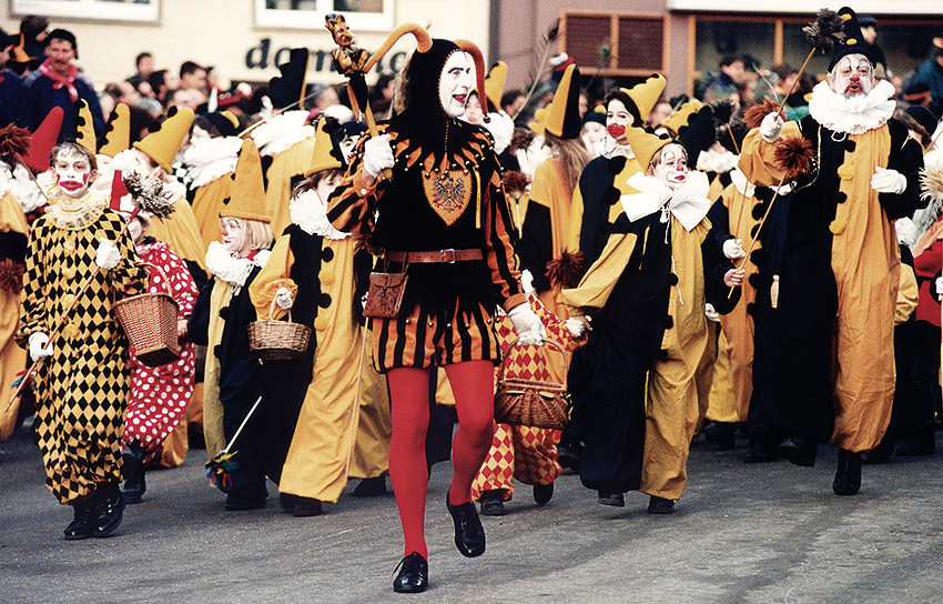 Wie im Mittelalter wurde der witzige Narr von der Theaterelite zum Erfüllungsgehilfen des Bösen degradiert. Zum gesellschaftlichen Außenseiter, zum Menschen ohne Vernunft und Verstand. Weil dieses Wesen aber im Kern der Fastnachtsidee entsprach, schließlich galt es, einmal im Jahr die Welt auf den Kopf zu stellen, fanden die von Wanderbühne und Straßentheater verbannten Lustigmacher im Karneval immer mehr Anhänger. Figuren wie Columbine, Pierrot und andere belebten in vielen katholischen Regionen die Straßenfastnacht. Als „buntscheckige Gestalten“ machten sie in Zeitungsreportagen von sich reden. So schwärmte anno 1802 der Reporter der „Zeitung für die elegante Welt“ in einer Reportage aus Überlingen von einem „ganz neuen Schauspiel“, das „im kleinen eine Nachahmung des Karnevals von Venedig“ sei. „Diese Narrenprozession dauert nun vier Tage lang, von Mittag bis Mitternacht, und Sie können denken, wie toll es dabei hergeht“, versuchte der Journalist seine Leser für einen Ausflug an den Bodensee zu gewinnen. „Da gehts von einer Zunft auf die andere, von Wirtshaus zu Wirtshause – überall ertönt Musik und Tanz; was nicht selbst von diesem Strome hingerissen wird, das liegt neckend und geneckt in den Fenstern und bewirtet die herumziehenden Masken an seinem Tische in zahlreichen Familienzirkeln. Jubelgeschrei und Peitschenknall lassen schon von weitem Savoyarden und Zigeuner und den ganzen bunten Markt von Venedig erwarten.“ Überall in den größeren katholischen Städten des deutschen Südwestens ging es damals ähnlich zu, wie die Archive der ältesten schwäbisch-alemannischen Narrenzünfte eindrucksvoll belegen.