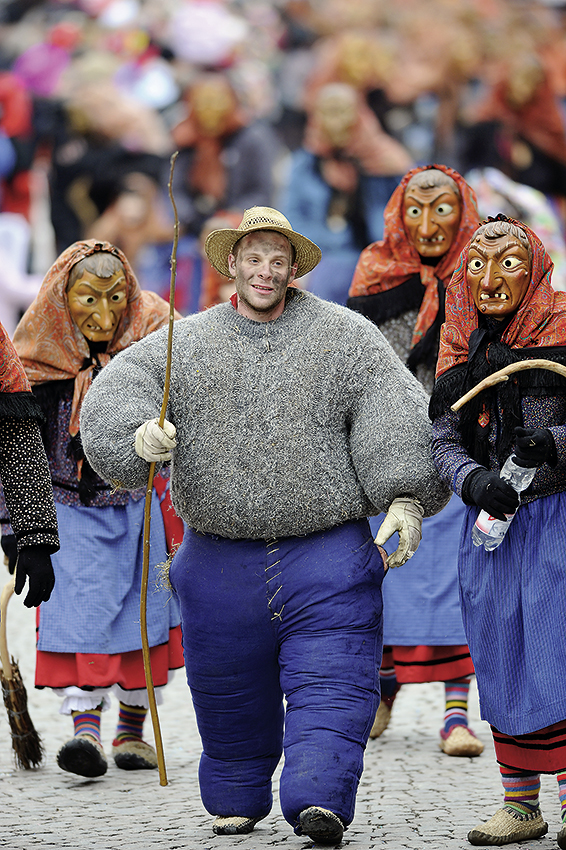 Schlagfertigkeit ist eine Gabe, die man nur schlecht trainieren kann, aber kaum eine Hexe der Freien Reichsstadt ist mal um eine Antwort verlegen. Und gerade dies macht das Besondere der Gengenbacher Hexen aus. Eine echte Härteprüfung erwartet die Bewerber schließlich am Fasendsundig, wenn es recht früh daran geht, nicht als Hexe, sondern – als Lumbehund zurechtgemacht zu werden. In eine viel zu große Hose und einen ebenso überdimensionierten Pullover passen Unmengen von Stroh, mit denen die Zwischenräume von Körper und Kleidung sehr fest ausgestopft werden. Da kommen etwa 20 Kilo zusammen. Das Endergebnis dieser „Mastkur“ sind von den Zuschauern am Straßenrand bemitleidete, recht unförmige Gestalten, die zudem als Spielball der Hexen beim Umzug herhalten müssen. Da werden die Lumbehunde umgestoßen, herumgerollt, man wirft sich auf sie, und die Ärmsten können wegen ihrer fast absoluten Unbeweglichkeit nichts dagegen machen. Es liegt auf der Hand, dass man in dieser extremen Fasendsverpackung schnell ins Schwitzen gerät und der Flüssigkeitsverlust an einem solchen Tag enorm ist. Da die Lumbehunde stets von Hexen begleitet werden, die für eine Art All-inclusive-Service in Form von Getränken und Würstchen sorgen, macht in der Regel auch kein Lumbehund schlapp. Dazu muss aber auch die Witterung mitspielen. Erfahrene Fastnachter berichteten von Fasendszeiten, als das Thermometer am Sonntag an die 20 Grad zeigte. Da mochte niemand mit den Lumbehunden die Rolle tauschen. Und für den Fall der Fälle haben einige der Begleithexen auch ein Taschenmesser dabei, um den Kandidaten rasch von seiner Strohlast befreien zu können. Ist schließlich auch diese Prüfung gemeistert, steht einer glorreichen Laufbahn als Gengenbacher Hexe eigentlich nichts mehr im Wege. Nach dieser Extrembelastung heißt es dann am Fasendmendig, erst einmal ausruhen. Denn in Gengenbach ist an diesem Hohen Tag eigentlich in Sachen Fasend nicht viel los.